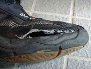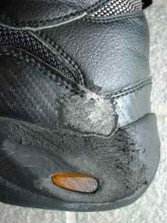 そのかわり、かかと付近などの車体に当てがう箇所は削れやすいです。まあ、気にしませんけれど。
