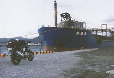 この橋は「単一アーチ橋として日本一、全長約90m」。なかなかの壮観。中央町からはR443で東陽村へ。 ◎東陽村〜県25〜大通越〜五木村〜R445〜人吉 「生姜畑が続く」県25。峠に近付くと道路幅を広げる工事をやっていた。おそらく、 五木村のダム建設のためだろう。大通越部分には大きなトンネルが建設されていた。 この日はこれまで流れが悪くペースがあがらなかったので、時間短縮の為にトンネルを通行した。 県25を下るとR445。このあたりもダム工事のための道路工事が進んでいて、 トンネルやら新道やらが発達しかけていた。五木の子守歌のこの地がやがてダムに沈む。 沈む前にじっくり訪れたい場所だ。 ◎R219〜R267すぐ左折〜矢岳高原〜えびの市 人吉市からえびの市へはR221を利用するのが一般的だし、名物のループ橋も楽しめるが、 今回は新たなルートを開拓することにした。 R267をすぐ脇道に入り、矢岳高原を走るルート。せまいクネクネ道。 しかも、地元の農園の作業車2台がごくスローペースで前を走っている。 こちらは遊び、あちらは仕事、というわけでガツンと抜くのは申し訳ないのでしばらくトロトロ走る。 譲ってくれる気配なし。しんどい。地図で見るよりもはるかに距離のあるタイプの道なので、 時間を食われる感がビンビンしてしんどい。結局矢岳駅前で1台が脇に避けてくれて、 さらにもう1台も避けてくれたので嬉しかった。 その矢岳駅だが、挟路を登っていった先に突然あらわれるので、かなり意外な感じがする。 電車に乗ってこんなところを走ったら楽しいだろうな、と思いながら先を急ぐ。 矢岳高原は久住高原みたいに広大な感じはないけれど、よく手入れされた茶畑が非常に印象的だった。 お茶の葉の色というのは神秘的だ。矢岳高原からは県408を快調に下って京町へ。 R268〜栗野町〜県103〜野々湯〜霧島温泉郷〜R223〜隼人町 このあたりでガソリンを補給、トイレ。栗野町から県道に入り霧島へ。 走りが楽しいのは霧島バードラインだが、今回の道は交通量少なく路面もよいワインディングだった。 R223をハイスピードで下ると、隼人町。そして鹿児島湾に出た。 R10〜鹿児島市〜県22〜吹上町 R10で鹿児島市へ向かう。しばらくはすり抜けがつづくが、 姶良町を抜けるあたりからは快走片側2車線路。信号なし、カーブありで、ビュンビュン走ると楽しい。 お気に入り。あっというまに鹿児島市内へ。この日は天気がよく、桜島がくっきりみえる。 ![]() せっかくだから桜島とバイクを一緒に写真に納めようと、場所を探すがこれが不思議とみつからない。 しょうがないので、桜島だけを納めた。地元のおばちゃんが「こんなにキレイにみえるのはめずらしいよ」 といっていた。ラッキー。 このまま揖宿を目指すと、事前に宿へ伝えておいた時間よりだいぶん早くついてしまうので、 遠回りして坊津町へ行くことにした。市内から県22で薩摩半島を横断する。交通量はそれほどなかった。吹上町へ。 R270〜県269〜坊津町〜R226〜耳取峠 R270加世田市部分はのどかな感じ。護岸工事されていない小川が多くあり、心が洗われるようだった。 枕崎との境あたりで県269に入り、坊津町をめざす。坊津町の耳取峠から開聞岳を拝みたい。 坊津の海岸線はリアス式のように複雑に入り組み、ダイナミックな岩礁が美しい海をきわだてていた。 日も暮れはじめてきたので先を急ぐ。 耳取峠からはツーリングマップルにあるとおり、確かに開聞岳が美しかった。 夕暮れなので、ぼんやり紅色である。初めてみる開聞岳の整った形ににはビックリ。 走って楽しい道だったので、写真はとらずに枕崎へ。 枕崎〜R226〜開聞町〜山川町〜くりや旅館着 枕崎ではなぜか忘れたが港に寄った。その後はひたすらR226を走る。