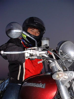 概要●日時 2002年2月22日 天候 雨のち晴れ 基山丸幸ラーメン集合〜R200〜山家〜県77筑紫野三輪線〜甘木〜R386〜 朝倉〜杷木〜日田〜R210〜天瀬〜玖珠〜JAスーパーで食材購入〜 九重〜 水分峠〜やまなみハイウェイ〜瀬の本〜一の宮〜阿蘇公園菊池線〜 大観峰にて焼肉〜R212〜南小国〜県40〜満願寺温泉〜県40〜R212〜小国〜 大山町〜日田市〜往路を引き返し原田にて解散 ◎走行距離→未計測 ◎食事→昼食:大観峰にて焼肉(豊後牛、ピーマン、おにぎり、お茶) ◎出費→食費 一人1500円程、ガソリン代 2000円程 この月の始めごろ、懐かしい人物から電話が入った。小中学校時代の同級生で、 現在は地方公務員をやっている。なんでも2ヵ月前にバイクの免許を取ったとのこと。 僕がバイクに乗っていたことを思いだして、電話してくれたわけだ。 話を聞けば、 四輪免許のみの状態からいきなり大型二輪を取得したというから驚きだ。 彼の名は町田。駆るマシンはKAWASAKI ZR1100。すなわち、ゼファーの逆車である。 後日、同級生が働くお好み焼き屋で話をしたり、僕の散歩コースをバンディットと走ったりしたが、 もちろんそれでは飽き足らないので、近日中にミニツーリングをやろうということになった。 こうなると、ルート設定に悩む。風景がよく、走りやすく、酷でなく手近なルートを考えなければならない。 悩みだすときりがないので、無難にやまなみハイウェイをメインとし、周辺で昼食、 その後適当な温泉に入って帰途に着くことにした。例年ならば、 やまなみハイウェイは残雪があるが、 今年は暖冬で基山付近の峠も凍結しらずなので、 大丈夫だろうと判断した。 なお、昼食は眺めのよいところで肉を焼くことにする。 ◎基山丸幸ラーメンに集合 この日は平日。町田がわざわざ有給休暇を取ったにもかかわらず、天候はさえない。 まったく近頃の天気予報はあてにならない。週間天気予報なんて、 どんどん悪い方にずれていく。 裏をかくことが求められているのか、、、、、。 それはともかくとして、 町田にとっては初めてのツーリング。雨や寒さに対する装備は十分じゃないし、 濡れた路面も大きな負担となるだろう。とりあえずカッパズボンを貸し、 やまなみに近づくにつれ天候が好転することを願い出発。 ◎夜須〜甘木〜日田 僕にとってはいつものルートで日田方面へ。出発して間もなく、小雨が降り出した。 クルマの流れにのってたんたんと走るのみ。当日朝の予報では昼前までには晴れるとのことだったが、 前線と行動をするパターンで天候は回復しない。日田ではR212とR210の交差でトイレ休憩。 ◎R210〜玖珠〜水分峠 いつも走る道なので、この時のことを改めて思い出すことができないが、 小雨が降ったりやんだりという状況だったと思う。 昼食はやまなみハイウェイ、もしくは大観峰あたりで焼肉をする予定だったので、 それに最も近くて栄えた玖珠町で食材を購入することにする。 農協系のスーパーに入り、 豊後牛の切り落としをたんまり買い込んだ。1.2kg程になろうか。 それにしても、さすが本場のJA、価格が安い!野菜(ピーマン)とタレは自宅から持参。 白飯も欲しかったが、この店にはにぎりめししか置いてなかったので、 それはコンビニでゲットすることにした。 それにしても町田は寒そう。ジャケットに雨が浸透し、中のトレーナーが濡れている状態のようだ。 僕は前の月に新調したコミネのジャケットで無敵。暖を取るべく、缶コーヒー飲んで出発。 まもなく水分峠に到着。やまなみ、大観峰、以前の最後のコンビニに 寄るが、 白飯はなく、握り飯すら売り切れの状態、、、、。無念。 ◎やまなみハイウェイ 小雨が降りウェットではあるが、残雪もなく、予想通り凍結の心配はなさそう。 ただし、霧で視界が非常に悪い。路面ウェット、視界悪のワインディング。 初ツーリングの町田にとってはチト酷だろうなぁ、、、、と心の中で思いつつひた走る。 視界が悪いことで、数台のクルマが連なりペースが上がらず時間がかかる。 朝日台のあたりになり標高が下がると、フッと霧が晴れて割りと遠方を見渡せるようになった。(写真) 晴れ間こそのぞめないものの、嬉しいものだ。 このあたり、前年同時期にGSFで走った時は、道路以外一面の銀世界だった。 今年は山肌に残雪がある程度。雪路マニア以外のライダーにとっては喜ばしいが、 見渡す限りの雪景色もなつかしい。あの風景をGSF最後の日に見れたことはある意味ラッキーだったのかもしれない。 ![]() この区間は霧が晴れ、山肌の残雪が美しかった その後、急勾配の牧戸峠を越えて瀬の本方面へ。さすがに道路脇には残雪あり。 コントロールを失ったクルマが衝突したのだろう、道路標識が倒れていた。 ウェットな下り道が続きだすと、前走のファミリーカーが道を譲ってくれたのでちょっぴりペースを上げる。 凍ってたらやだなー、と思いながら慎重に走る。炭鉱のカナリアのようだ。 瀬の本の休憩所に到着。白飯を探す
